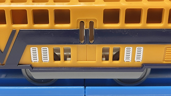 「シーズントライ」以降は中間車1階部分のルーバーが銀で塗り分けられている。