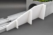 擁壁にはPCで描いたコンクリート風の柄を紙に印刷し、貼れるパネルに貼り付けている。