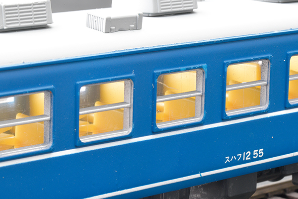 内装はなぜか黄色成型のプラスティック。外からでも分かるくらいに黄色くリアルには程遠いが、青い車体に黄色い内装という色彩の組み合わせが美しく「これはこれで良いよね…」と思っているクチである。