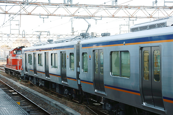 13 DD51と連結した状態だが、パンタグラフが上がっており通電している。 ‘26.2.4 南海電鉄 南海本線 和歌山市 【この画像の記事に戻る】 私鉄の路線にDD51見参!?珍しい並びも展開!南海8300系の甲種輸送を追跡してみた! 前の画像 次の画像