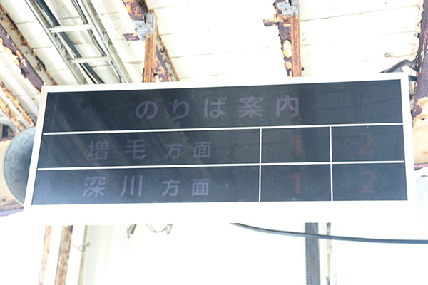 掲示板にうっすらと残っていた「増毛方面」の文字。