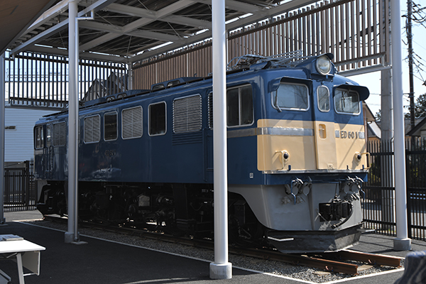 DSC_6231 ED60 1。1958年に製造された直流新性能電気機関車の最初の形式。入園口すぐのところに展示される。 【この画像の記事に戻る】 中央線201系にスカ色115系、ED60も美しく蘇る!新しい青梅鉄道公園の様子を一足早くチェック! 次の画像