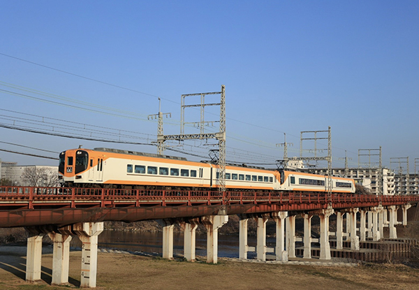 朝日を浴びなから近鉄特急は大和川を渡り吉野へと向かいました。