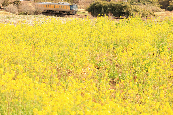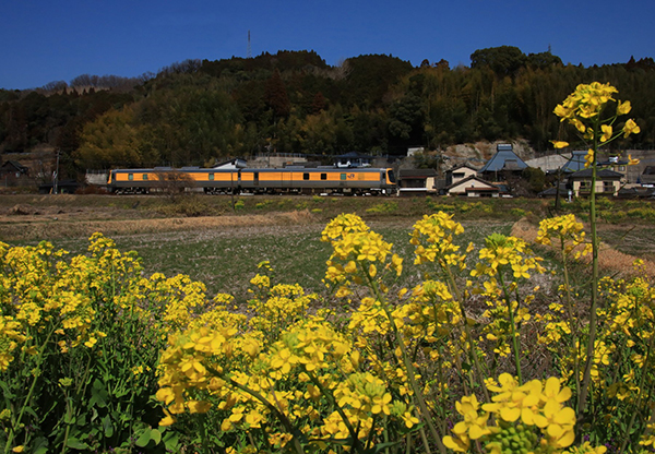 ●菜の花咲く沿線を黄色いキヤ141が駆ける