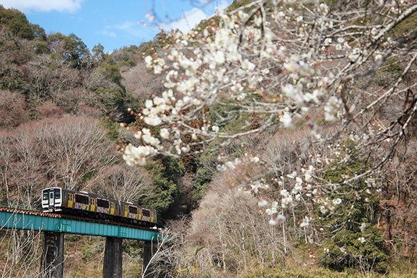 梅の花に見送られ「忍たま乱太郎列車」は卒業の日(運行終了日)を迎えました。