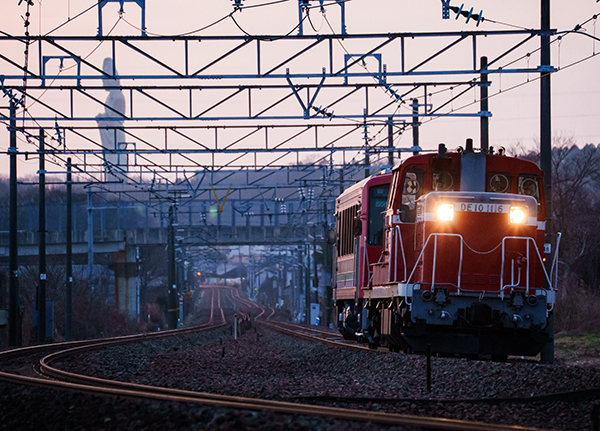 夕暮れの中、高山線の列車を連れてデーテンがゆきます。