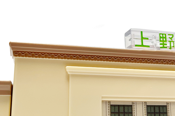駅舎上部のモダンな装飾はモールド表現だ。