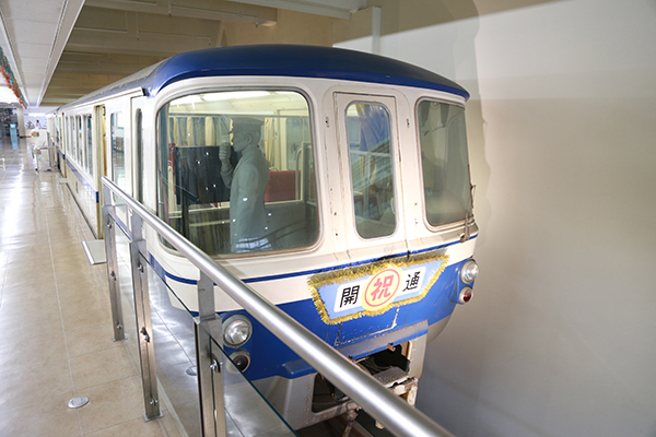 公園に併設された「モノレール展示室」。当時の乗降ホームであった場所がそのまま活用されている。