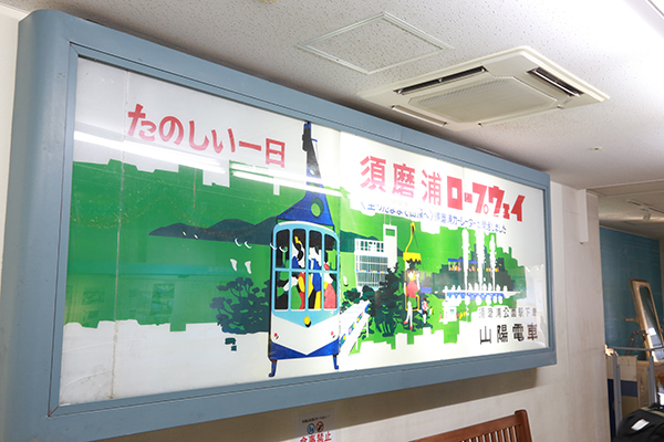 こちらは当時から掲出されていた須磨浦ロープウェイの広告看板。「カーレーター」の文字が見える。