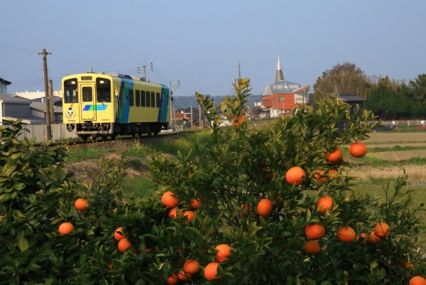 ●田川線は、なのはなだけではなく、みかんもまた魅力的です。「なのはな号」は直方に向かいます。