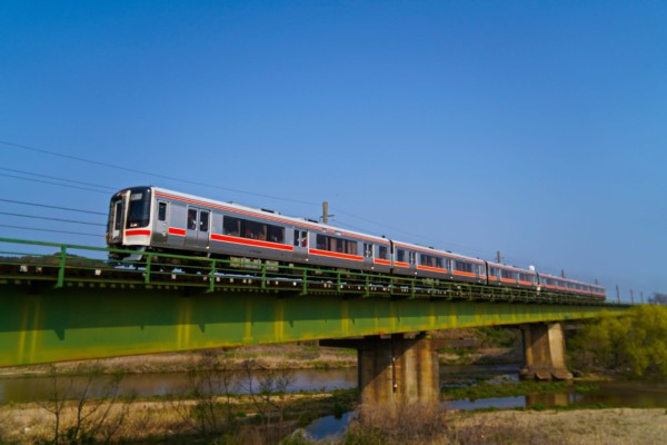 鈴鹿川橋梁を渡り、「鈴鹿サーキット稲生駅」に向かう、美濃太田区所属のキハ75気動車「臨時快速列車」6両編成(3両編成×2)。