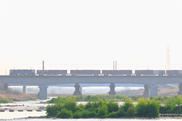 ●春霞む多摩川を、PF牽引のコンテナ列車が駆け抜けます。