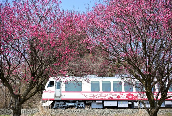 ●東北本線沿線に咲く、花桃が「ひなび」を歓迎していました。