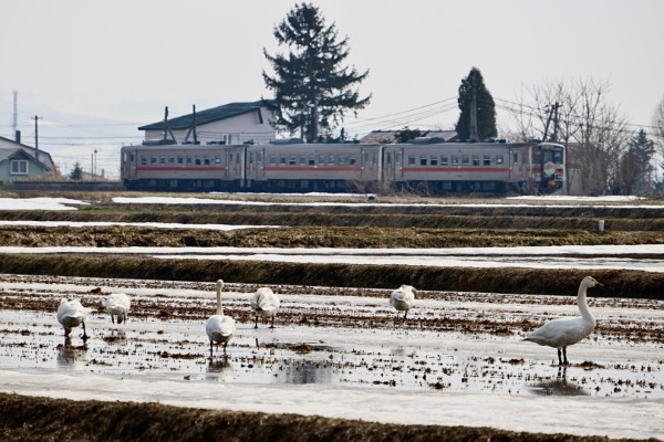 ●留萌本線の最終日、ハクチョウさんたちがお別れに来ました。
