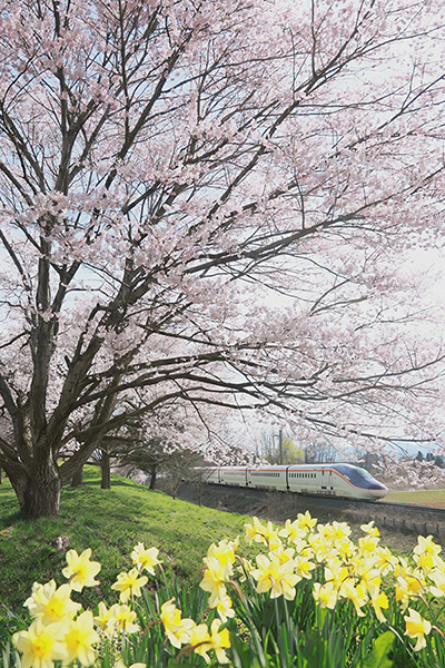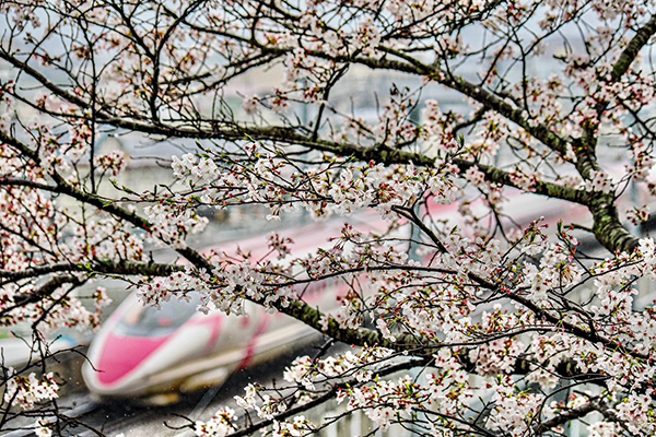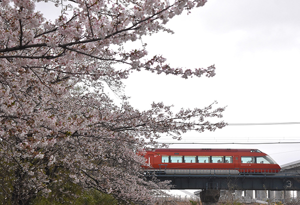 ●春まっただ中、特急が駆けていく。