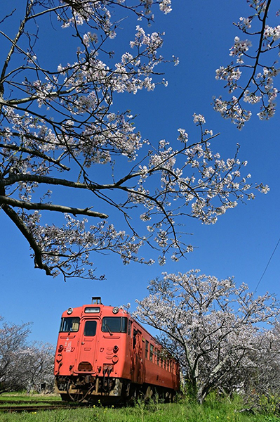 ●青空に映える桜、そこにキハ40が花を添えました。