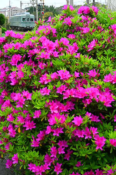 ●沢山のツツジが咲く中、列車は終点に向かってラストスパートに入ります。