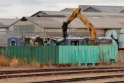 マニ50 2241解体 JR線路上最後?のマニ50原形救援車 長野総合車両センターで