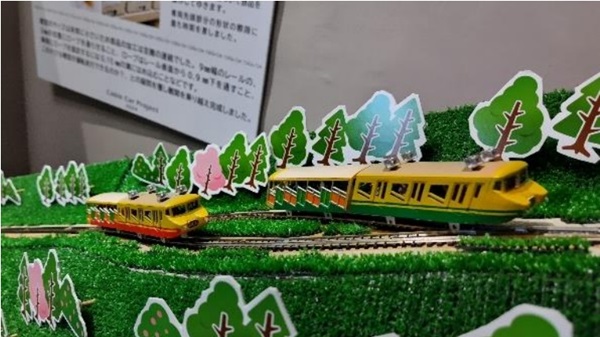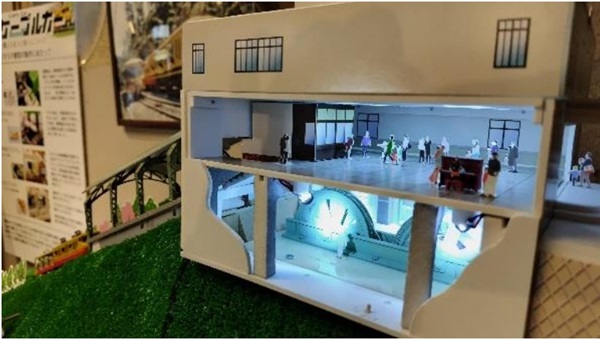 六甲ケーブル運行再開を記念して、本物同様のギミックで動くケーブルカー模型が展示中!