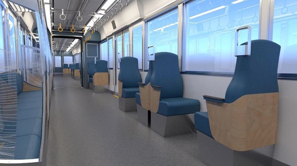 (4) インテリア 日常にも非日常にも、美しい海沿いの景色を楽しんでいただけるよう、座っている方の視線が海側を向く座席配置とします。 また、座席や床の色を、鎌倉・江の島をイメージした3つのテーマカラーとし、乗るたびに新たな発見をお届けします。
