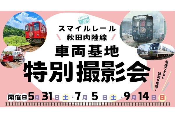 秋田内陸縦貫鉄道では、阿仁合駅隣接の車両基地にて特別撮影会を開催する。列車が入出区する様子を間近で眺めることができるほか、ヘッドマークの取り付け実演など、鉄道ファンに好評の企画が目白押しだ。さらに、かつて急行「もりよし」で運行され、非貫通の独特な前面スタイルで親しまれた旧型車両8900型も公開の予定。