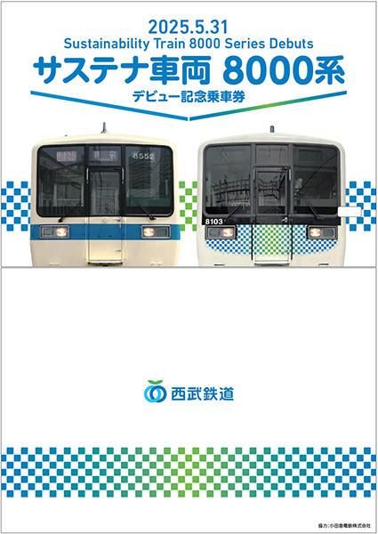 「サステナ車両8000系デビュー記念乗車券」のデザイン。画像提供:西武鉄道