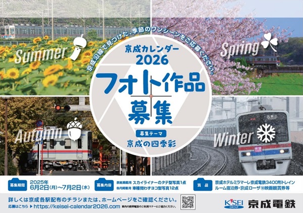 京成電鉄では、2026年の京成カレンダーに掲載する作品を募集する。