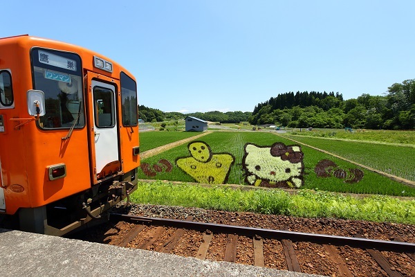 JR東日本・奥羽本線の鷹巣駅と田沢湖線の角館駅を結ぶ秋田内陸縦貫鉄道では、沿線の4ヶ所で田んぼアートが展開されている。これは毎年アイデアを公募して行なわれているもので、車窓から一番きれいに見えるようにデザインされているという。