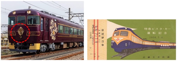特急「あをによし」の前面エンブレム(左)や「ビスタ・カー」運行開始記念の特急券などが展示予定だ。(画像:プレスリリースより)