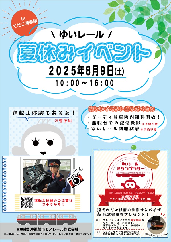 ゆいレールは、2025年8月9日(土)に「ゆいレール 夏休みイベント」を開催する。