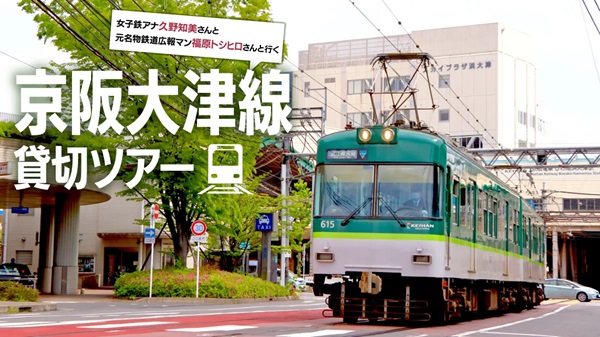 旅々列車たびは、MKトラベルとのコラボ企画として、女子鉄アナウンサー・久野知美さん、元名物鉄道広報マン・福原トシヒロさんと「京阪大津線600形」を貸切るツアーを開催する。久野さんと福原さんの貸切ツアーシリーズは今回が第3弾。