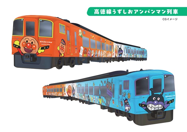 新たなアンパンマン列車は、子供に絶大な人気がある「アンパンマン」と「ばいきんまん」をコンセプトにした車両デザインとし、オレンジベースの車両には「アンパンマンとそのなかまたち」が、ブルーベースの車両には「ばいきんまんとそのなかまたち」がデザインされる。