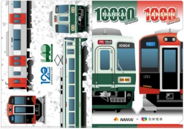 アクリルキーホルダーやクリアファイルといった記念グッズも同時に発売される。阪神は赤基調の塗装に変更された1000系が、南海は緑色ツートンの10000系が主役となっており、両社の記念ロゴマークも配置されている。発売場所は記念入場券セットと同様で、こちらも売り切れ次第販売終了とのことだ。