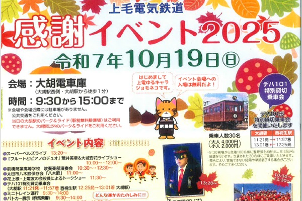 上毛電気鉄道では、10月19日(土)に「感謝イベント2025」と題して楽しいイベントを開催します。