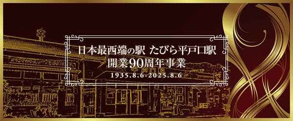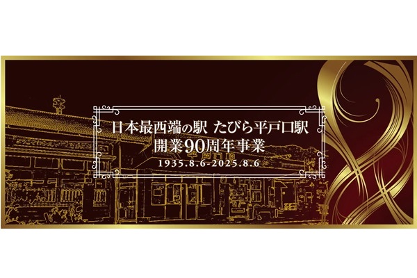 松浦鉄道では、日本最西端の駅であるたびら平戸口駅が開業90周年を迎えることを記念して、記念入場券を発行する。対象となるきっぷの提示によって無料で入場券を配布するというスタイルで、先着1000枚の限定配布。特別デザインの入場券2枚と台紙のセットとなっているが、デザインは当日のお楽しみとのことだ。