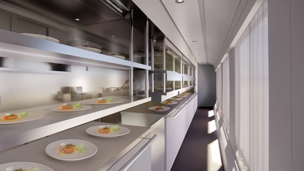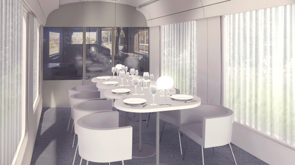この新型車両は4両編成で、うち3号車は1両丸ごと厨房車両とする設計。鉄道車両としては日本最大の面積を誇る厨房を備え、できたての料理を提供することにこだわっている。また、先頭車両には同社初の個室(定員8名程度)が設けられ、前面展望を独占できる贅沢な空間が用意される。