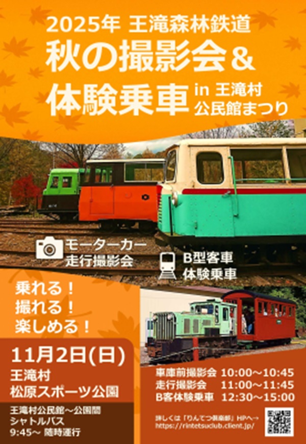 鉄道保存団体「りんてつ倶楽部」(長野県王滝村)では、2025年11月2日(日)に、地域鉄道文化の保存・継承を目的とした撮影会イベントを開催する。