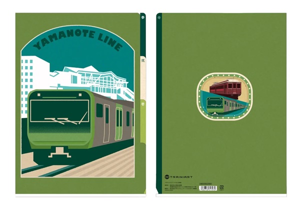 ステッカー同様にナデ 6110 形式とE235系がコラボした、レトロアートが可愛らしい山手線の3ポケットクリアファイル。背景までこだわった3枚のイラストが、100周年の歴史を表現している。レイヤーごとに異なる絵柄でデザインされているため、書類を入れる場所によって絵柄が変わる点もポイント。