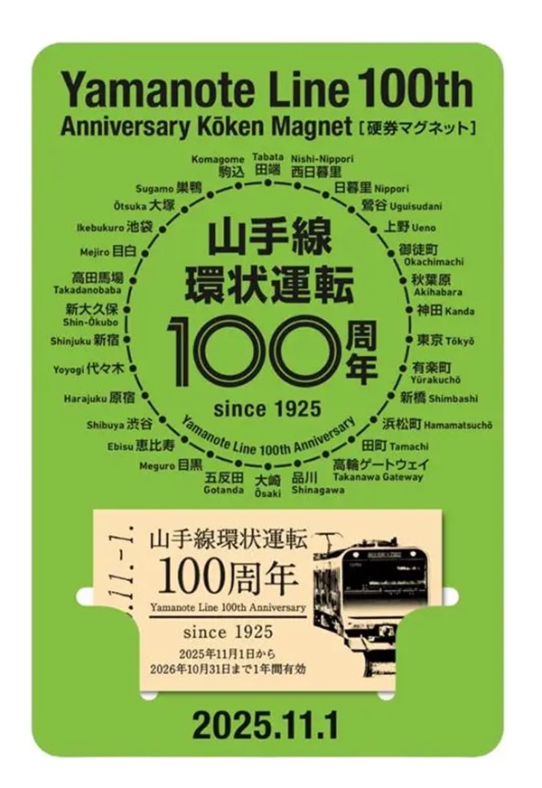 JR東日本商事は、山手線が環状運転を開始してから、2025年11月1日で100周年を迎えることを記念し、山手線環状運転100周年記念グッズを4種発売する。