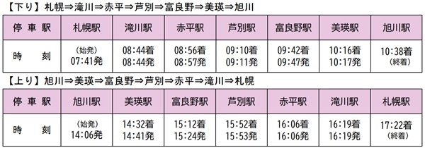 札幌~富良野~旭川間(函館線・根室線・富良野線経由)