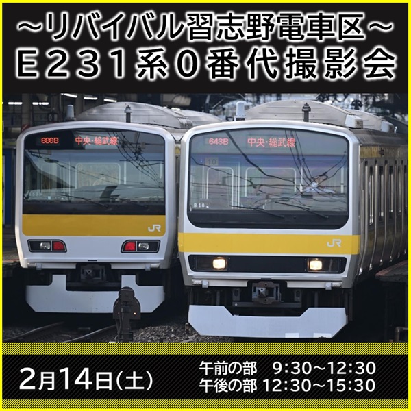 JR東日本千葉支社は、津田沼統括センター習志野構内(旧・習志野電車区)において、昨年好評だったE231系0番代の撮影会を今年も開催する。