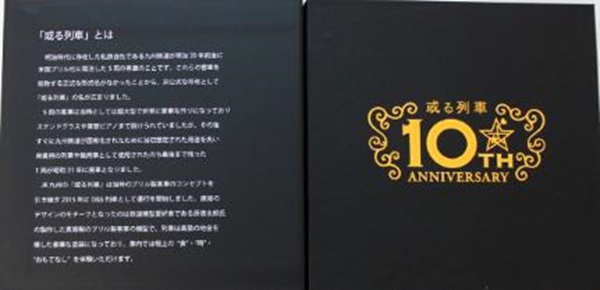 商品内容は、「10周年記念キーホルダー」「或る列車 銘板レプリカ」「特別専用ケース」「或る列車 列車型陶器」の4点セット。