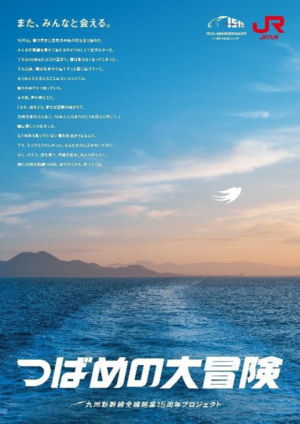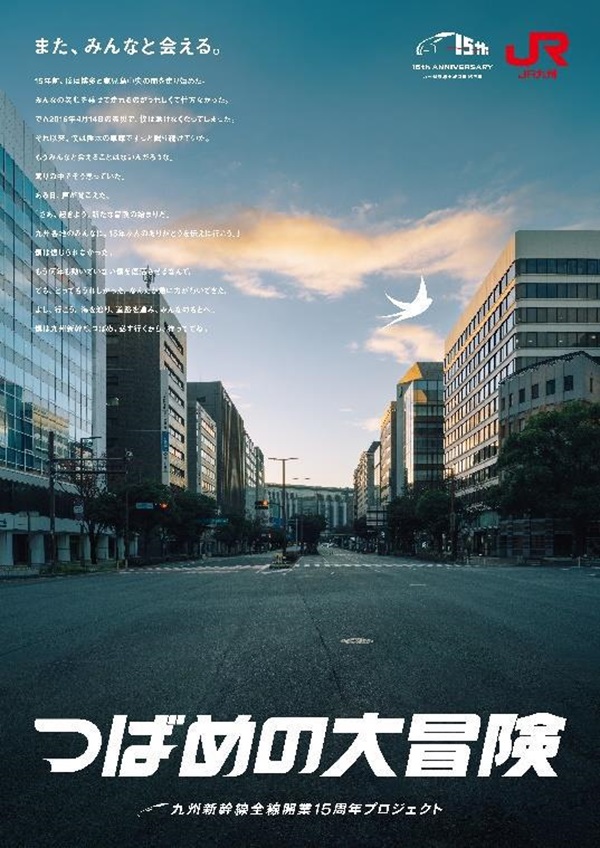 JR九州は、2026年3月12日(木)、九州新幹線が全線開業15周年を迎えることを記念して、九州新幹線全線開業15周年記念プロジェクト「つばめの大冒険」を始動する。