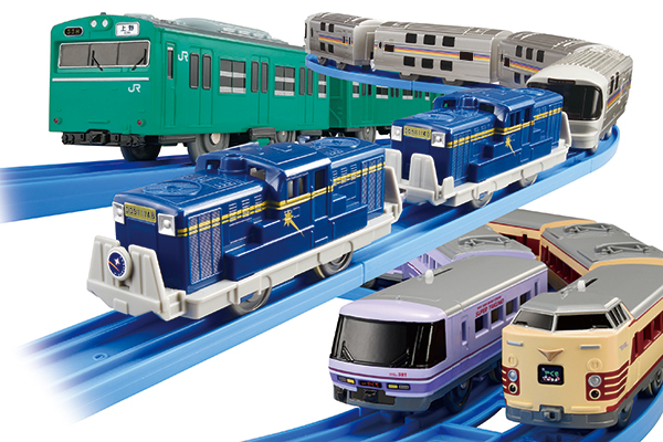 引退に関連した製品が3種登場しており、「ありがとう!北の大地を駆け抜けた寝台特急カシオペア」はプラレールで初めて「カシオペア」の中間車であるスロネE27が製品化。DD51の重連と合わせて大迫力の6両編成で楽しむことができる。