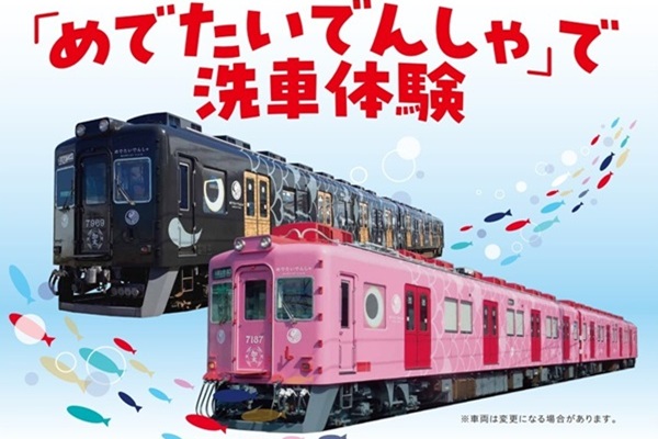 この見学会では、「めでたいでんしゃ」に乗車して、車両の中からの洗車体験や、車掌のアナウンス体験、運転士の気分になれる体験のほか、缶バッジ製作体験をすることができる。