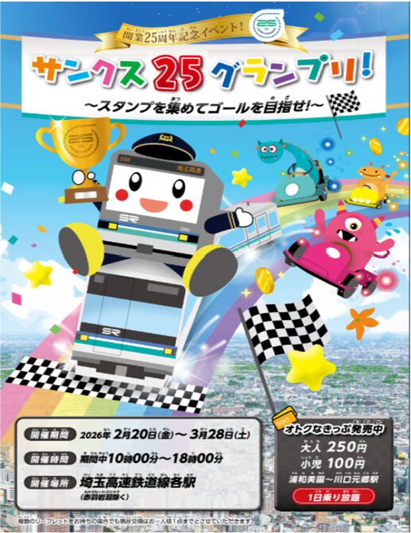 なお、同イベントに併せて「サンクス25グランプリきっぷ」を発売する。この乗車券は、レースの舞台となる浦和美園駅〜川口元郷駅間を1日自由に巡ることができ、大人250円、小児はワンコインの100円と大変オトクな乗車券となっている。