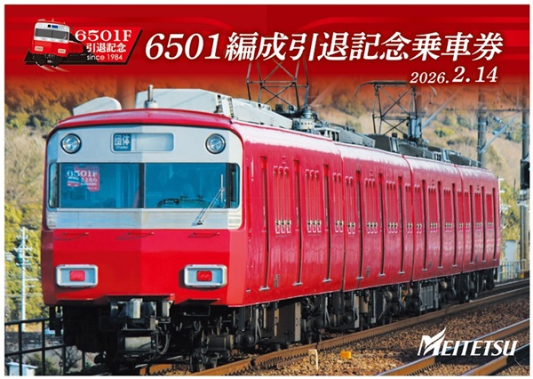 名古屋鉄道は、6501編成引退記念乗車券を発売する。同車は、1984年にデビューしてから、「鉄仮面」の愛称で通勤型車両としてとして昭和、平成、令和を駆け抜けた車両。引退に際して、6500のトップナンバーである6501編成引退記念乗車券を発売することとなった。