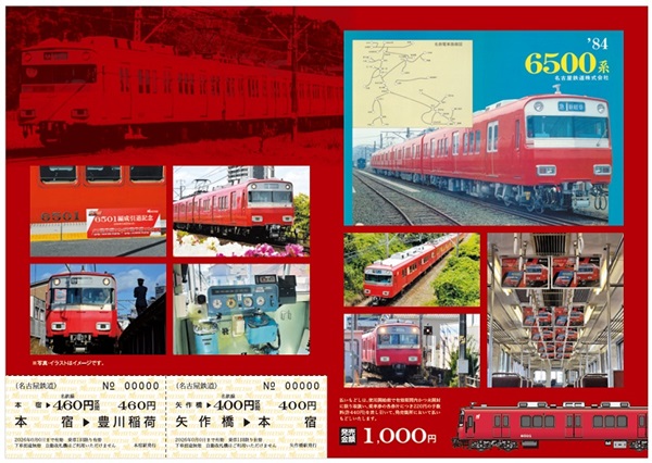 記念乗車券の内容は、 本宿駅から豊川稲荷駅まで(460円区間)の大人片道普通乗車券と矢作橋駅から本宿駅まで(400円区間)の大人片道普通乗車券、原寸大6501車番プレート風シール1枚となっている。