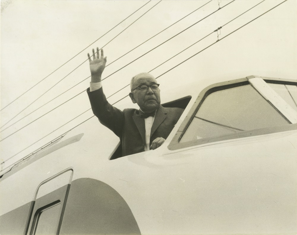 新幹線から手を振る十河信二