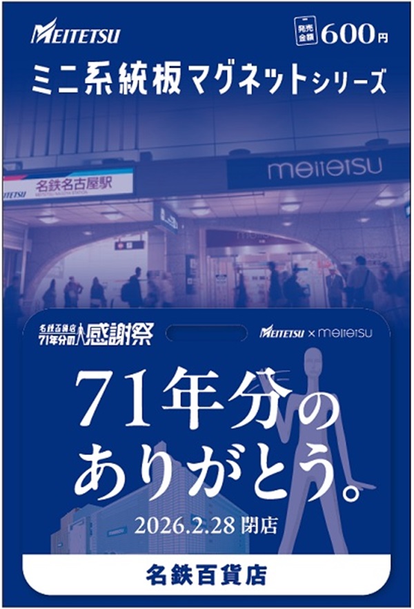 名古屋鉄道は、名古屋駅前の顔として歩んできた名鉄百貨店本店の閉店に際し、利用客と共に刻んだ多くの思い出を形に残したいという想いと長年の愛顧への感謝を込めて、「ありがとう 名鉄百貨店 記念乗車券」とミニ系統板マグネットを発売する。